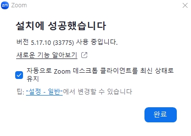 4. 설치에 성공했습니다 창이 뜬 후 완료 버튼을 눌러줍니다.