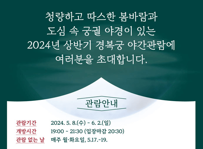 - 예매처 : 인터파크 2024년 상반기 경복궁 야간관람 (interpark.com)