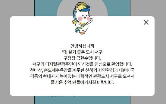 ④ 그럼 아래와 같이 지역에 대한 설명과 귀여운 마스코트가 나옵니다.