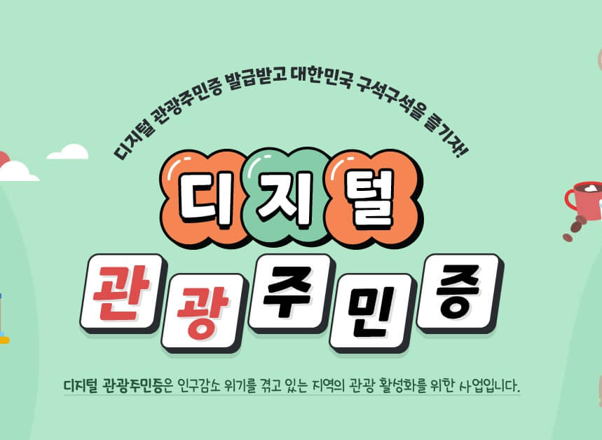 여행을 떠날 때 어떻게 하면 비용을 효율적으로 줄일 수 있을지 고민하고 계시나요? 이러한 걱정을 덜어줄 수 있는 디지털 관광주민증을 발급 받으시면 여러 시군에서 제공하는 체험 활동, 맛있는 식음료, 흥미로운 관람 등 다양한 서비스에서 할인을 받으실 수 있어 더욱 알차고 경제적인 여행을 만끽하실 수 있습니다