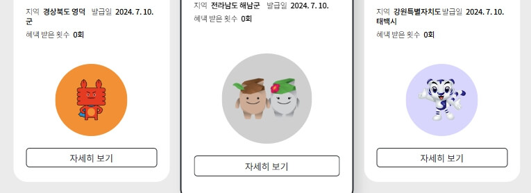 ③ 원하는 지역들의 디지털 관광주민증을 살펴볼 수 있는데요. 혜택이 궁금한 지역의 자세히 보기를 눌러줍니다.