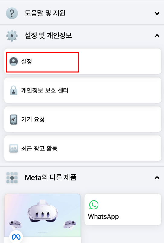 ② 메뉴 내에 설정 및 개인정보 - 설정을 눌러줍니다.