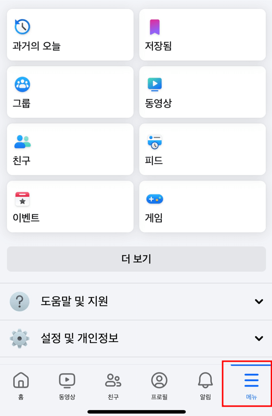 ① 페이스북에 들어가 오른쪽 하단 메뉴를 눌러줍니다.